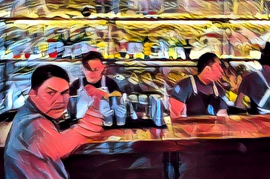 High on the wall of the main bar at Sabina Sabe is a picture of a sad clown. He is sitting at a table in an empty bar and staring disconsolately at a glass. In other surroundings, this artistic choice could set a sombre, even creepy tone, but fortunately from the bright turquoise exterior wall to the thumbs up from a punter who was determined to feature in my photo of the back bar, everything else about a recent Sunday evening visit to this central Oaxacan favourite shouted joy. And why not? With vast amounts of mezcal covering nearly every available surface – really only the vibrant talavera-tiled floor escapes – the congregants of this shrine to agave have a lot to be happy about. The local spirt unsurprisingly provides the backbone of the cocktail menu, with the Ancho Reyes enhanced Jamaicón (with Rey Campero Espadin, spice mix and lime) and Cilantriño (Rey Campero, coriander, cinnamon and allspice) the stand-outs while the Limonada Especiada (gin, ginger beer, pineapple syrup and cardamom) shows the bar staff can work with more than just agave. Elsewhere, the menu takes a turn for the bitter, offering a vermouth and tonic, several spritzes and some Negroni variants. The clientele in the difficult slot betwixt a very lazy brunch and an early dinner are mostly tourists lingering over a second round and wondering if it’s too early to start ordering from the menu of Oaxacan food dishes. This is a town that doesn’t let anything get in the way of a high quality pastry, snack or meal, after all. In the second room – all bare brick, metal chairs and painted tiles, English voices abound, with one – on departure – concluding, “mate, that cocktail was fucking banging”. Maybe that’s why the clown looked so upset and even the resident barfly resisted raising a thumb. (5 de Mayo 209, Ruta Independencia, Centro, Oaxaca, 68000. @sabinasabeoaxaca).
